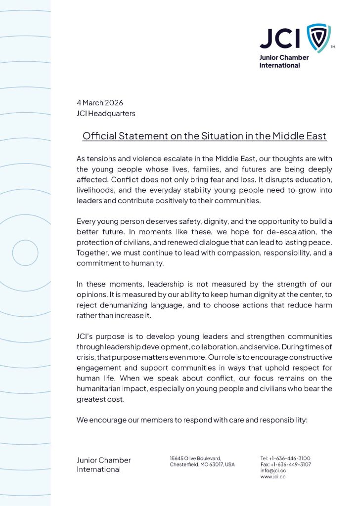JCI Headquarters’ Official Statement on the Situation in the Middle EastBy Chloe Tate / March 12, 2026
