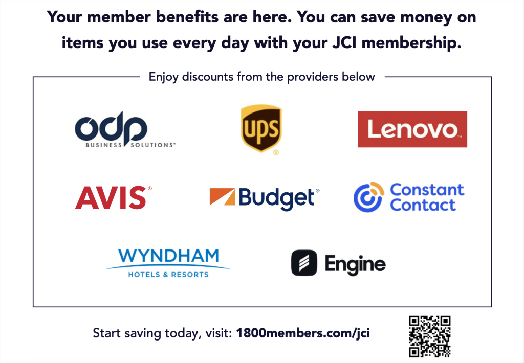 It’s a centralized discount platform available to JCI USA members that gives you deals on things you’re already spending money on, like travel, shipping, business tools, and more. As highlighted in the program flyer, members can “save money on items you use every day with your JCI membership.”
